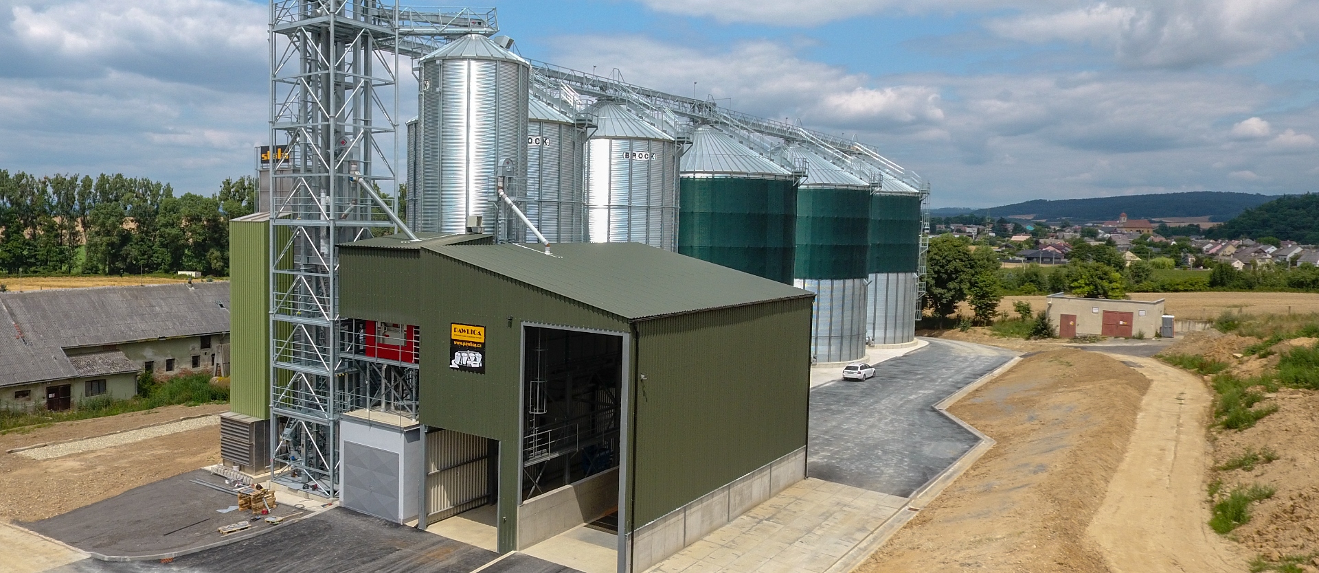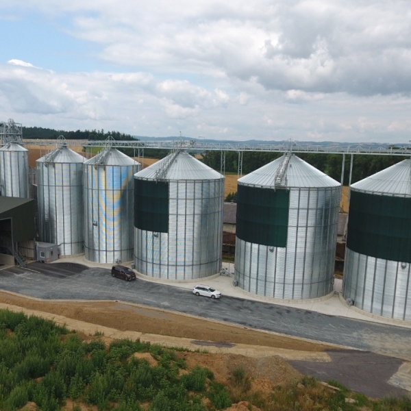 • Pojemność silosów BROCK wynosi 2x 1500 ton i 3x 3000 ton w pszenicy. Wszystkie silosy wyposażone są w kable termometryczne, stały monitoring wysokości układania stosu, dachowy wentylator antykondensacyjny, jak również turbiny ciśnieniowe dla 100% napowietrzenia materiału.